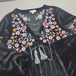 Velzera Women's Embroidered Tunic Mini Dress Beach Boho Tassel Sz Small