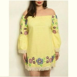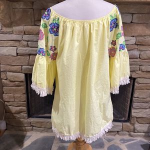 Velzera Yellow Off Shoulder Embroidered Tunic Short Dress Size 3X