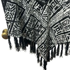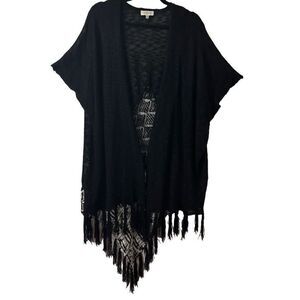 Velzera black & white boho open front one size short sleeve fringe cardigan.