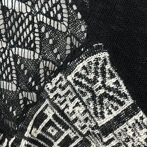 Velzera black & white boho open front one size short sleeve fringe cardigan