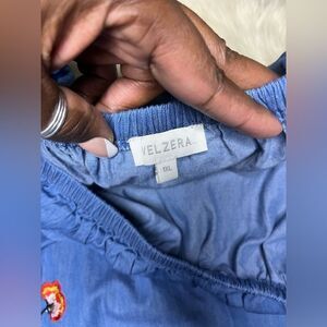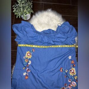 Velzera chambray floral embroidered off the shoulder tunic mini dress sz 1X
