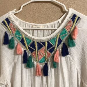 Velzera Tassel & Pom Pom Dress or even beach cover up Great vacation dress 100% cotton lightweight Size Large