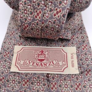 Venanzi Silk Necktie Elegant Patterned Tie Taupe Red Floral Abstract Formal