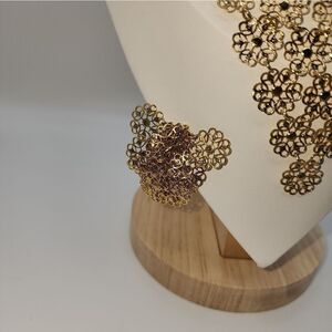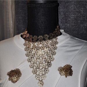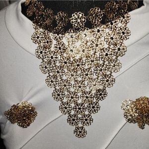 Vendome Flower Mesh Bib Necklace and Clip On Earrings Set 1960s Vtg