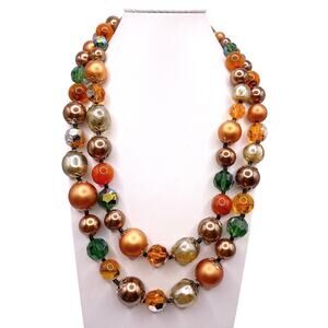 Vendome Lucite Beads Signed Autumn Tones Two Strands Necklace and Clip On Earrings Set