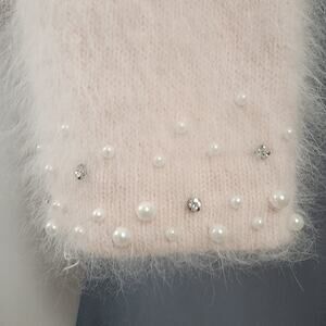 Venesha Angora Beaded Rhinestone Cardigan Sweater Pink S Coquette Regency Glam