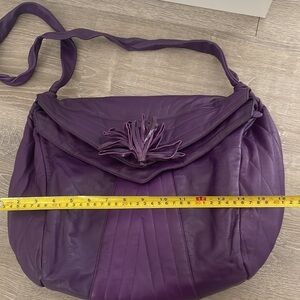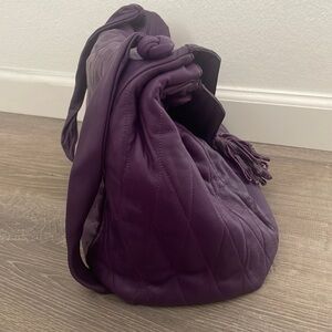 Purple Vanetta purse. Soft leather. Has one zipped pocket inside the main pouch.
