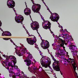 • brocade fabric with fuchsia, pink & gold beads, sequins, glitter & feathers