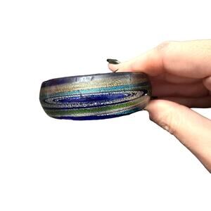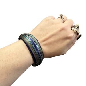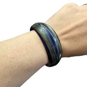 Venetian Cobalt Blue Glass Cuff Metallic Swirl