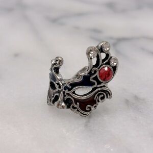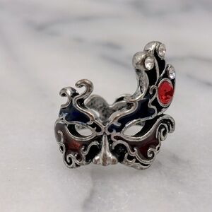 Venetian Costume Mask Red Crystal Finger Stretch Fashion Ring