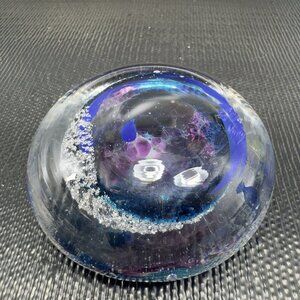 Venetian Italian Art Glass Paperweight Hand Blown With Silver Flecks Multicolor