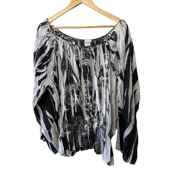 Venezia Black & White Semi-Sheer Long Sleeve Blouse Women's Size 18/20
