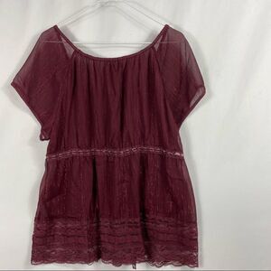 Venezia Burgundy Metallic Sheer Blouse Size 14/16 Check out the Video!