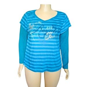 Venezia Fake Two Piece Long Sleeve Blue Royale Graphic Tee 22/24 NWT