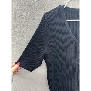 Venezia Jeans Clothing Womens Sweater 22/24 Black Ribbed Short Sleeve Button Up