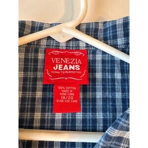Venezia Jeans Women 18/20 Plaid Vest Western Rodeo Cowgirl Country Cottage Blue
