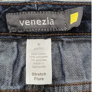 Venezia Jeans Womens 6/24WP PETITE Blue Stretch Flare Yellow Square Stretch