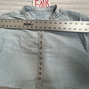 Venezia Jeans Womens Light Wash Denim Long Sleeve Button-Down Shirt Blue Casual