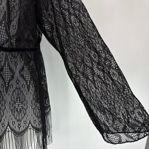 Venezia Jeans Y2K Lace Fringe Cardigan 18/20 Sheer Swim Cover Up Boho Whimsigoth