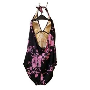 Venezia Lane Bryant Black Pink Floral Halter Top One-Piece Swimsuit Size 22W