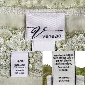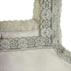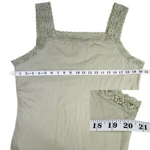 Women's stretchy lace trimmed tank top from Venezia in beige. The straps are NOT adjustable. Size 14/16 . 95% Cotton 5% Spandex. Due to light & screen variations, colors may vary slightly from the images
