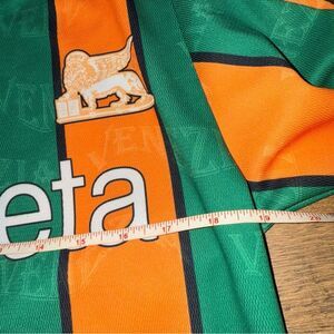 Bold green and orange stripes. Black collar. Venezia branding on sleeves. Vintage good condition