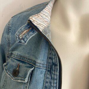 Venezia Oversized Cropped light Denim Jacket Zipper Closure Front Pockets 18/20