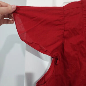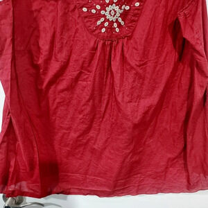 Venezia Red Scoop Neck with Beaded Detail Flutter Sleeve Blouse in Size 26/28