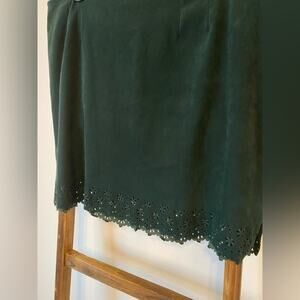 Venezia Jeans Clothing Co Vintage Holiday Emerald Suede Lace Hem Mini Skirt 22