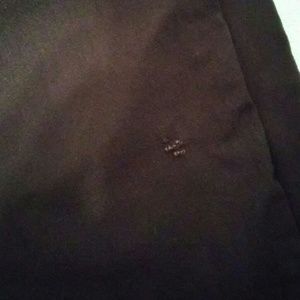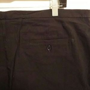 PL-12 31 inch inseam. A really beautiful pair of slacks that also have a beautiful texture. Great for evening and office wear. Stretch. Front zipper and button closure. 2 pockets on front and 1 button closure pocket on rear. Rayon/spandex/nylon. Dry clean. Pants have small slits at hem. Pants have a tiny hole that can be repaired.