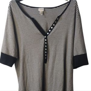 Venezia Soft Striped V-Neck with Button Accent Like New Black & White Size 22/24