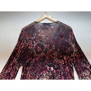 Venezia Velvet Burnout Wrap Blouse Top Womens 14/16 Red Sheer Flared Sleeves