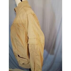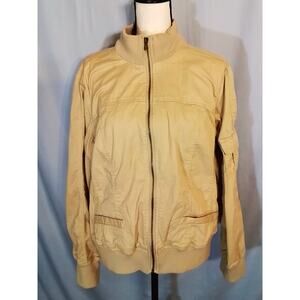 Vintage zipper Jacket with on pocket on left sleeve, front has mock pockets. Jacket is 98% cotton for comfort.