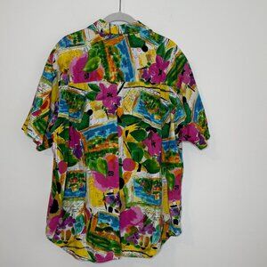 Venezia Women's 18/20 Worn to Perfection Colorful Short Sleeve Button Up Top