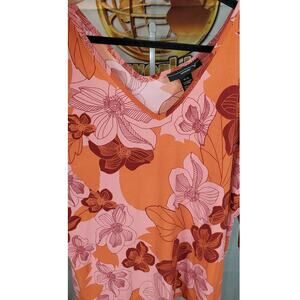 Venezia Women’s Floral Blouse – Pink/Orange Print, V-Neck, Size 18/20