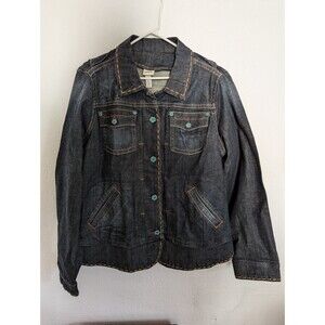 Venezia Womens Jacket Blue Dark Denim Stitch Buttons Pockets Stretch Size 18/20