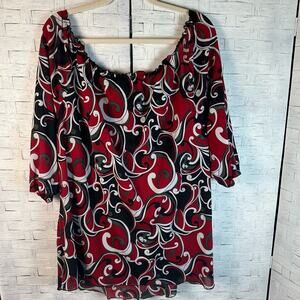 Venezia vintage Blouse Womens Red Black Ruffle Short Sleeve Top plus size