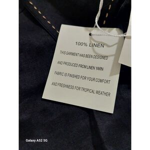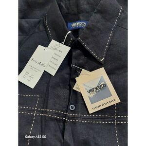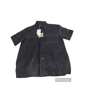 Venezzi 100% Linen Mens M Short Sleeved Button Up Black W/beige Stitching