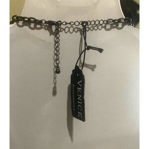 This Venice Accessories Chain Link Necklace boasts a gunmetal hardware finish and comes with unique charms. It's brand new with tags, promising top-notch quality and style.