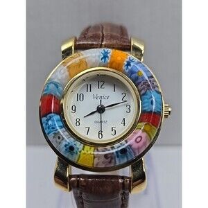 Venice Murano Millefiori Glass Bezel Goldtone Quartz Watch New Battery 30mm Gift