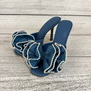 Venita Aspen For Gianni Bini Harlow Blue Ruffle Pearl Bow Heels Size 9