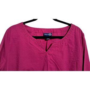 Venizia Jeans Womens Magenta Long Sleeve Blouse Size 18/20 100% Cotton Embroider