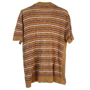 Orange, white and red stripe - breathable material, short sleeves, button up