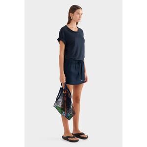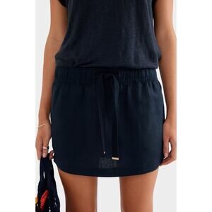 Featuring an elasticated waistband with grosgrain drawstring, side pockets, mini length, and relaxed silhouette. Designed in lightweight linen for everyday comfort. Material: 100% linen. Cold machine wash on delicate cycle. Fits true to size