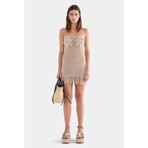 Description from retailer: Strapless mini dress in cotton with floral crochet detailing and fringe hem finish.