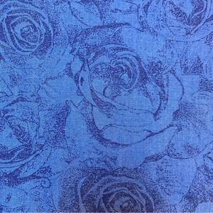 Blue tonal rose tablecloth. Sun fading. Please see photos for exact condition.