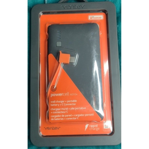 DESIGNED TO PERFORM: One of the lightest batteries on the market, the Power cell 6010+ portable charger is perfect for travel. The sleek compact design makes it easy to slip into a bag, purse, briefcase, or even a shirt pocket MAX CHARGE: Recharge the battery pack in only 4 hours with the included charging cable. Our 6010+ power bank comes with an attached charging cable, USB-C or Lightning available, to charge all your devices UNIVERSAL CHARGING: With an attached charging cable and USB port you can charge all your devices simultaneously. Great charger cord gift ideas for men and women! You can rely on Ventev cables that are built to last. Condition: New/ Sealed