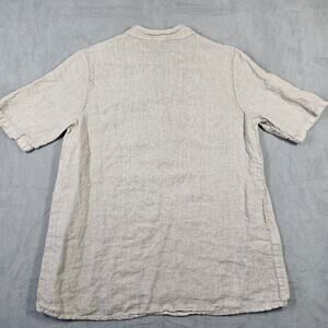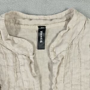 Venti6 Blouse Womens Small Linen Minimalist Beige Shirt Lagenlook Pleated Hippie