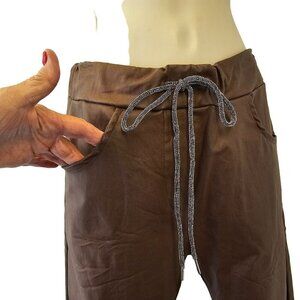 Venti6 Brown Crinkle Jogger Women XS Drawstring Pants Lurex Drawstring Close NWT