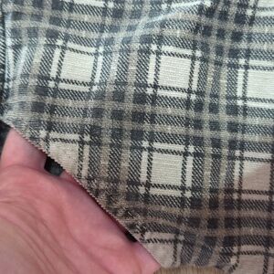 Stylish plaid pants with a frayed hem. Features a comfortable fit. Great condition.